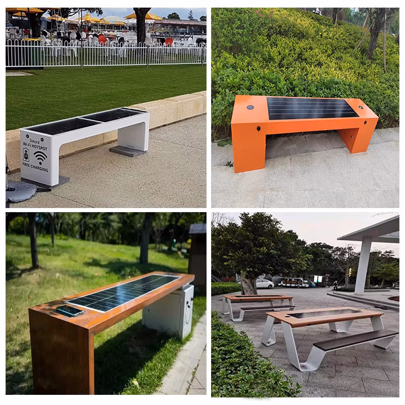 Стильный наружный стул с солнечной энергией, спинкой и стальной рамой Внешний стенд из нержавеющей стали с солнечной зарядкой функции удобные улицы Масса